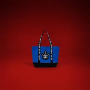 Pettit created a custom tote bag that says Go Leafs Go in Anishinaabemowin. MINI TIPI created a custom blanket representing Indigenous design in textiles.