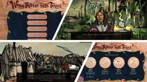 When Rivers Were Trails is a fun educational game released in 2019 that you can download to play on MAC and PC. It was designed by Elizabeth LaPensee and brought to the screen by a diverse set of more than 30 Indigenous creators, writers, artists, and designers. It was developed in collaboration with the Indian Land Tenure Foundation and Michigan State University’s Games for Entertainment and Learning Lab, thanks to support from the San Manuel Band of Mission Indians. This makes When Rivers Were Trails an important piece of Indigenous-centric edutainment for children and adults. The game is about the impact of colonization on the Anishinaabeg, Dakota, Crow, and other nations in the United States West during the 1890s. It is set during the era of allotments, boarding schools, and the attempted consolidation of nations onto ever smaller pieces of land.