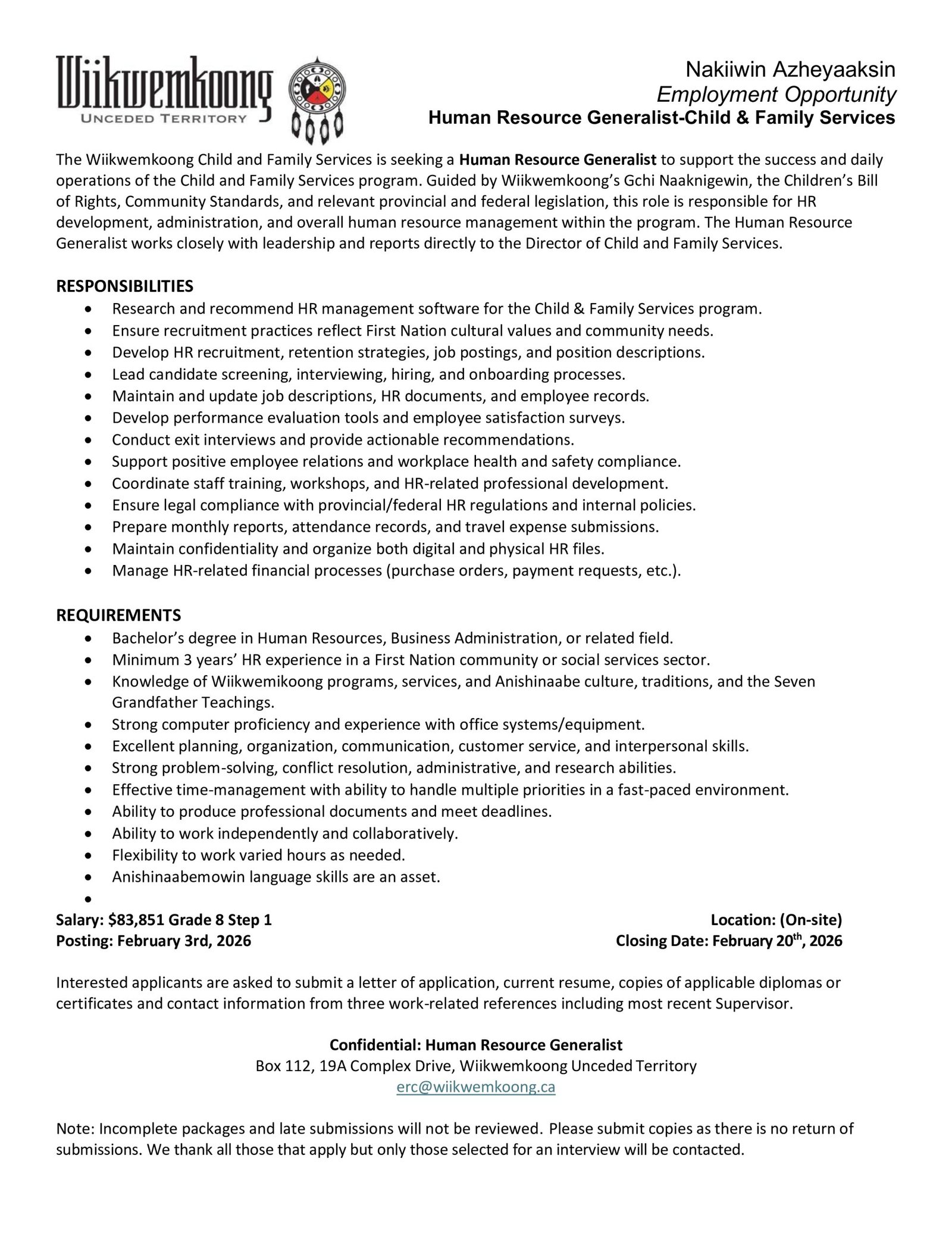Human Resource Generalist – Child & Family Services