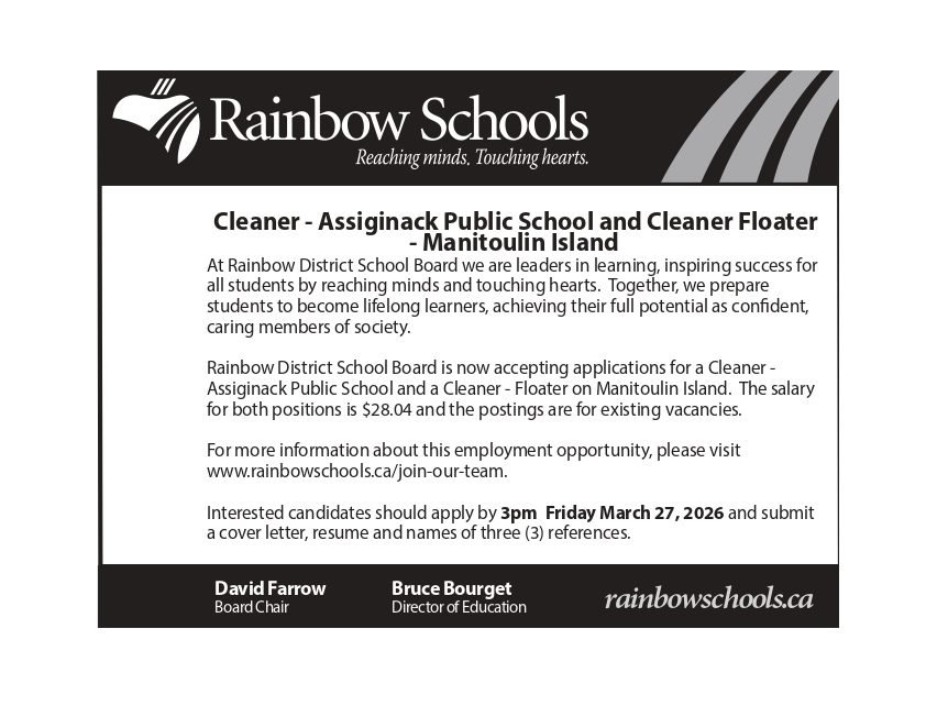 Cleaner – Assiginack Public School and Cleaner Floater – Manitoulin Island