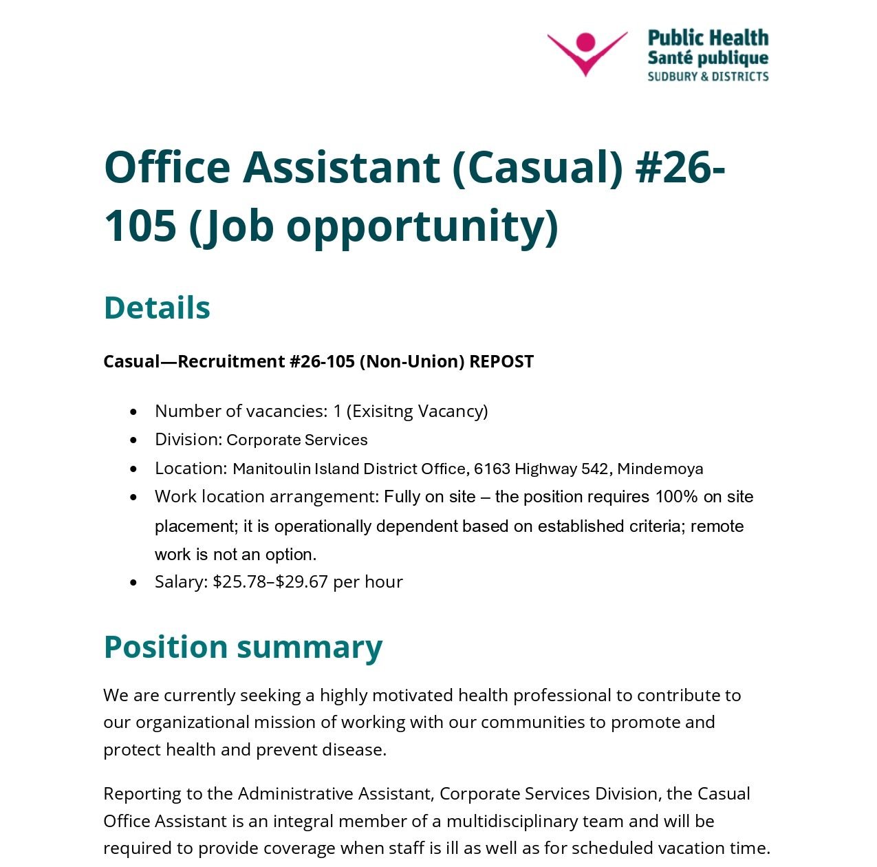 Office Assistant (Casual)