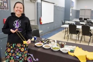 “It’s just a good opportunity for youth to make their own medicine pouch,” says Merry Francis, a cultural coordinator at Dilico. “It’s something they could make on their own and take home with them today. One of my co-workers suggested doing the four colours in the pony beads, which was a nice addition.”