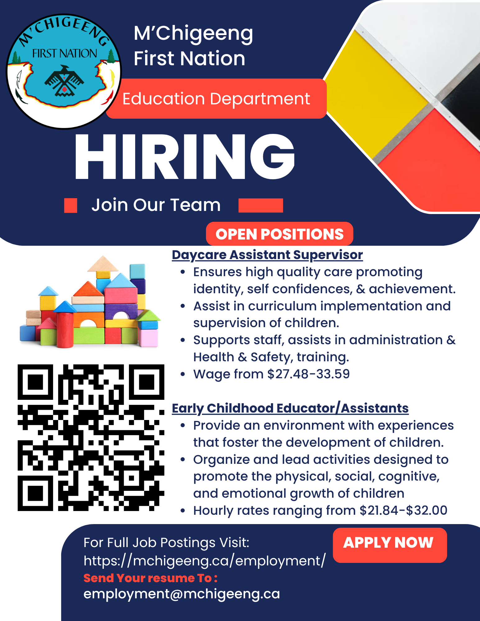 Various Positions for M’Chigeeng First Nation Education Department April 8, 2026 Apply Here: https://mchigeeng.ca/employment/